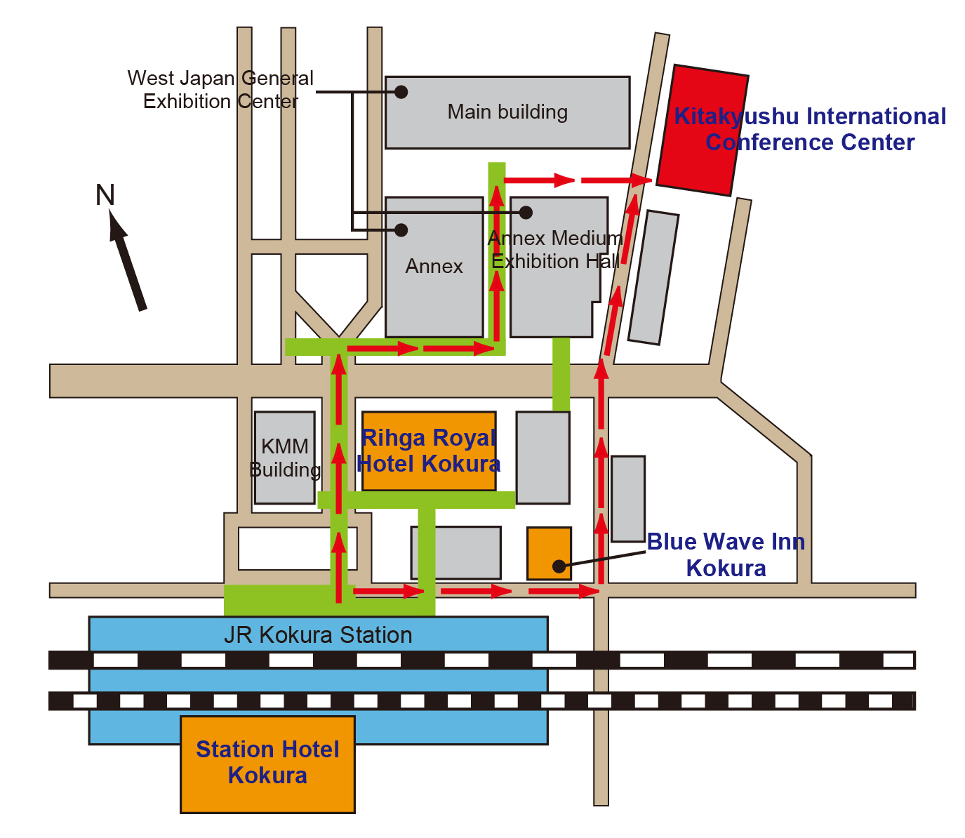 | How to reach Kitakyushu International Conference Center (Click this image for larger map) |
