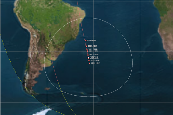 図2. 打ち上げの次の日に公開されたTLE軌道。A~Kの11個のオブジェクトが連なっています。この時点ではオブジェクトCをASTERISCだと考えていました。