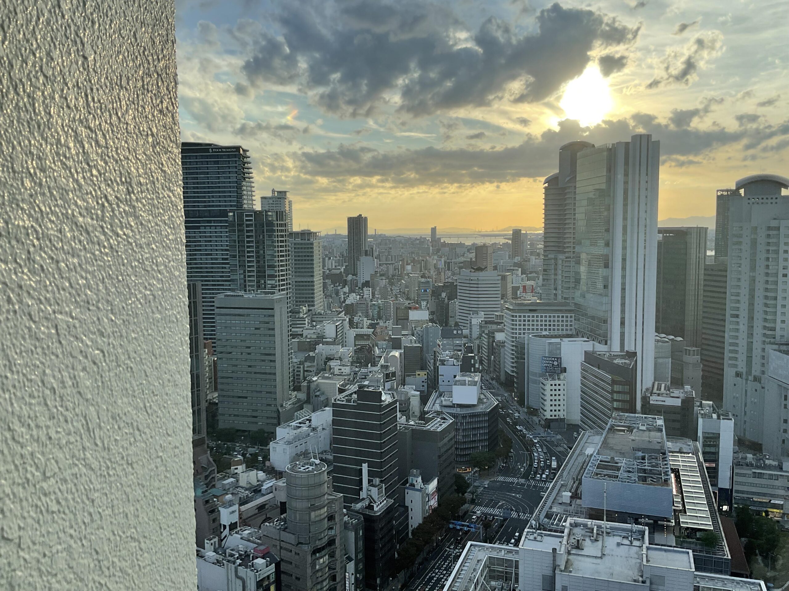 毎年、真夏真っ只中で最も暑くジメジメした8月初旬に開催されることが多いCosmic Dustは、開催時期では悪名をはせています。何と今年に限っては、開催時期が9月下旬と秋たけなわの好季節ではありませんか!ところがそう期待したのも束の間、伊丹空港のボーディング・ブリッジに片足を下ろした瞬間、「めっちゃ暑いやんけ」と思わず口ばしるほど。とほほ、開催中5日間は真夏日の連続でした。と言っても、めっちゃ冷房の効いた部屋で粉もんの議論は行われたのでした。会場となった大阪駅前第3ビル19階にある大阪産業大学梅田サテライトキャンパスからの眺めは、高層ビル群に囲まれて大阪城天守閣さえほとんど隠れて見えませんでしたが、33階の展望台からは明石海峡大橋が見えるほど眺めがよく、通りを歩く人の群れはメリケン粉のようでした。