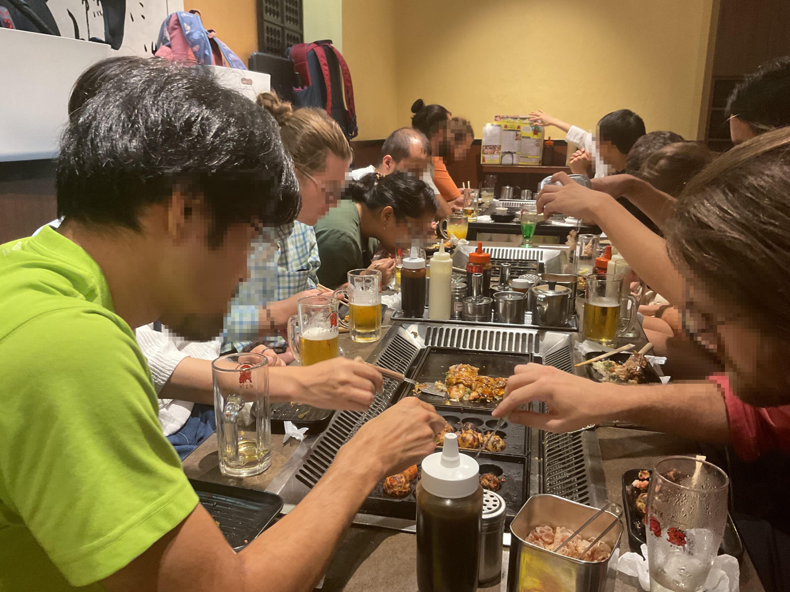 粉もんは、実は、宇宙の至る所に存在しているのですが、宇宙産の粉もんと言っても多種多様で、十把一からげには出来ないのです。たこ焼きと言っても大阪と明石では小麦と卵の違い、お好み焼きと言っても大阪と広島では麺の有無の違い、肉まんと言っても大阪と東京では肉の違い(注2)があるのと同じです。そこでCosmic Dustでは、審査を経て全日程参加する50名を選出し、プログラムには1時間おきに1時間のコーヒーブレイク兼ポスターセッションを入れ、参加者全員が顔見知りとなることで、わだかまりなく議論ができる場を設けています。粉もんに関して十分に議論を尽くし知見の共有ができるこのような機会は、世界中を見渡してもCosmic Dustが唯一無二の国際研究集会です。各食事時にはコナモン文化を満喫し、朝から晩まで粉まみれの5日間でしたが、ほんまもんのコナモンは、ほんま旨かった〜。