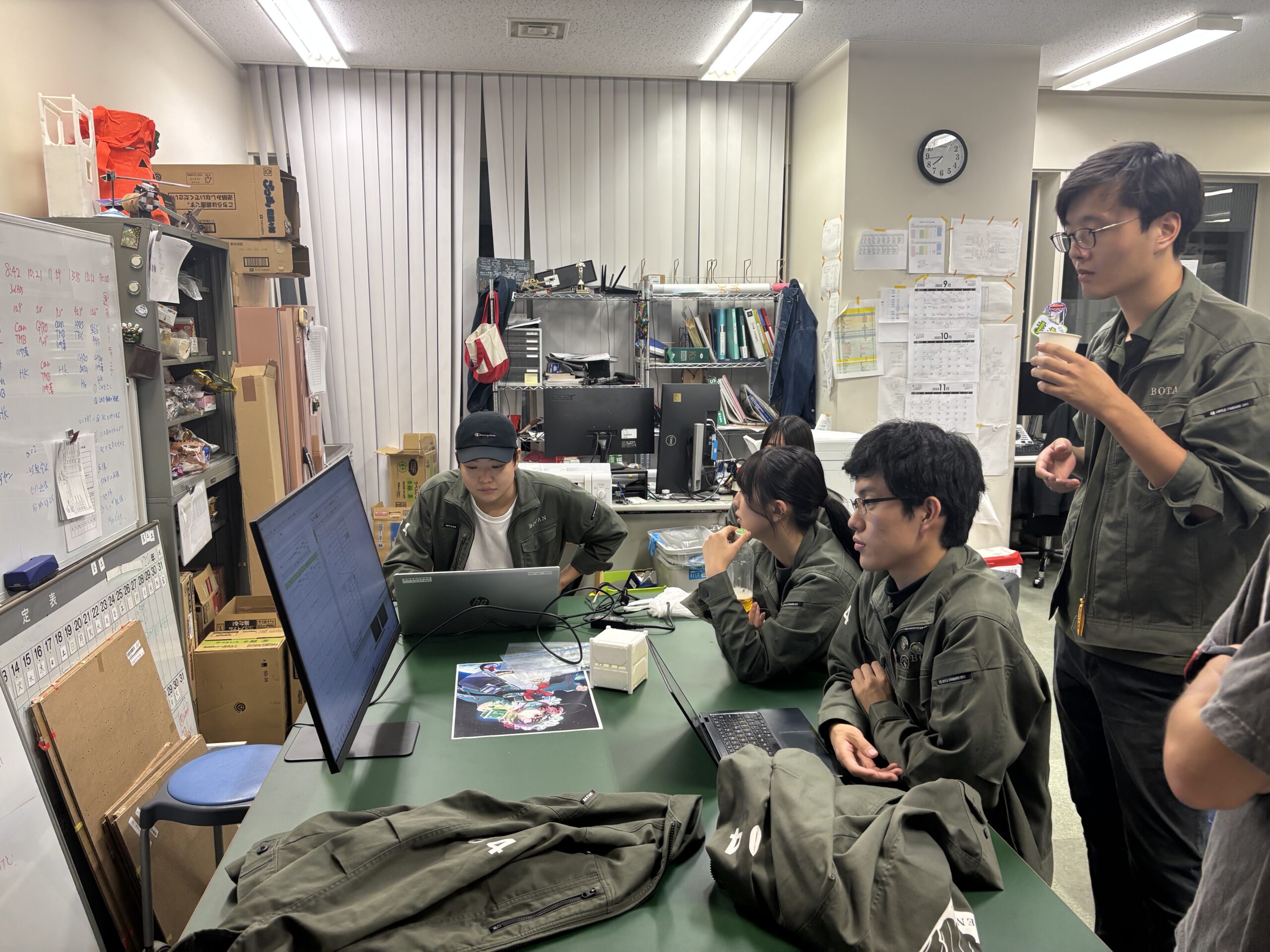 その熱意と固いチーム力を前に、指導する原田研究員は「学生の体力についていけません。さすがにおじさんは限界です。」と、学生さん達にお任せして仮眠を取っていました(笑)。“お任せ”できるのは去年までの先輩達の1~3号機の運用を一緒にやっていて経験値があるから。頼もしい!