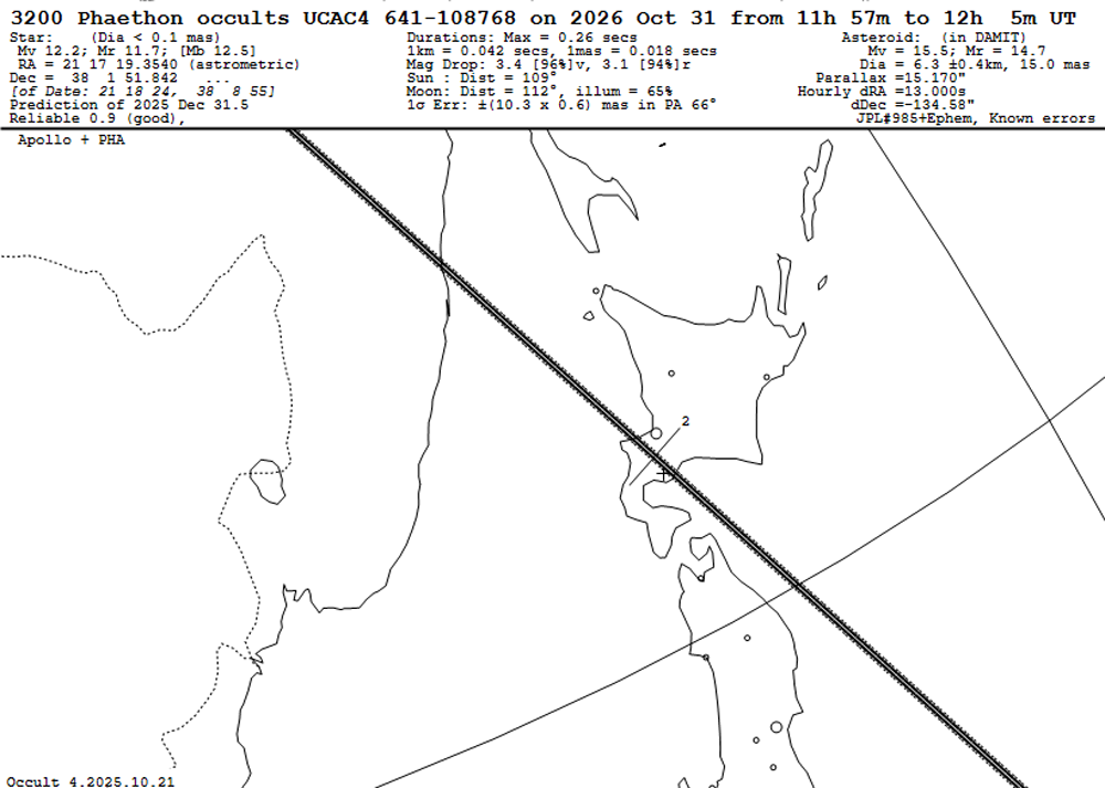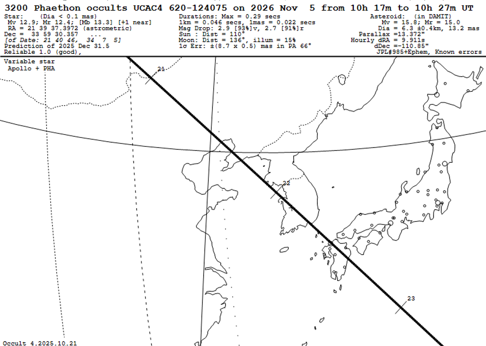 11/05 10h22mUCAC4 620-12407512.921 39 37.397+33 59 30.35(3200)Phaethon15.86.30.292.9NE China, Koria, KyushuHayamizuDESTINY+ misson target